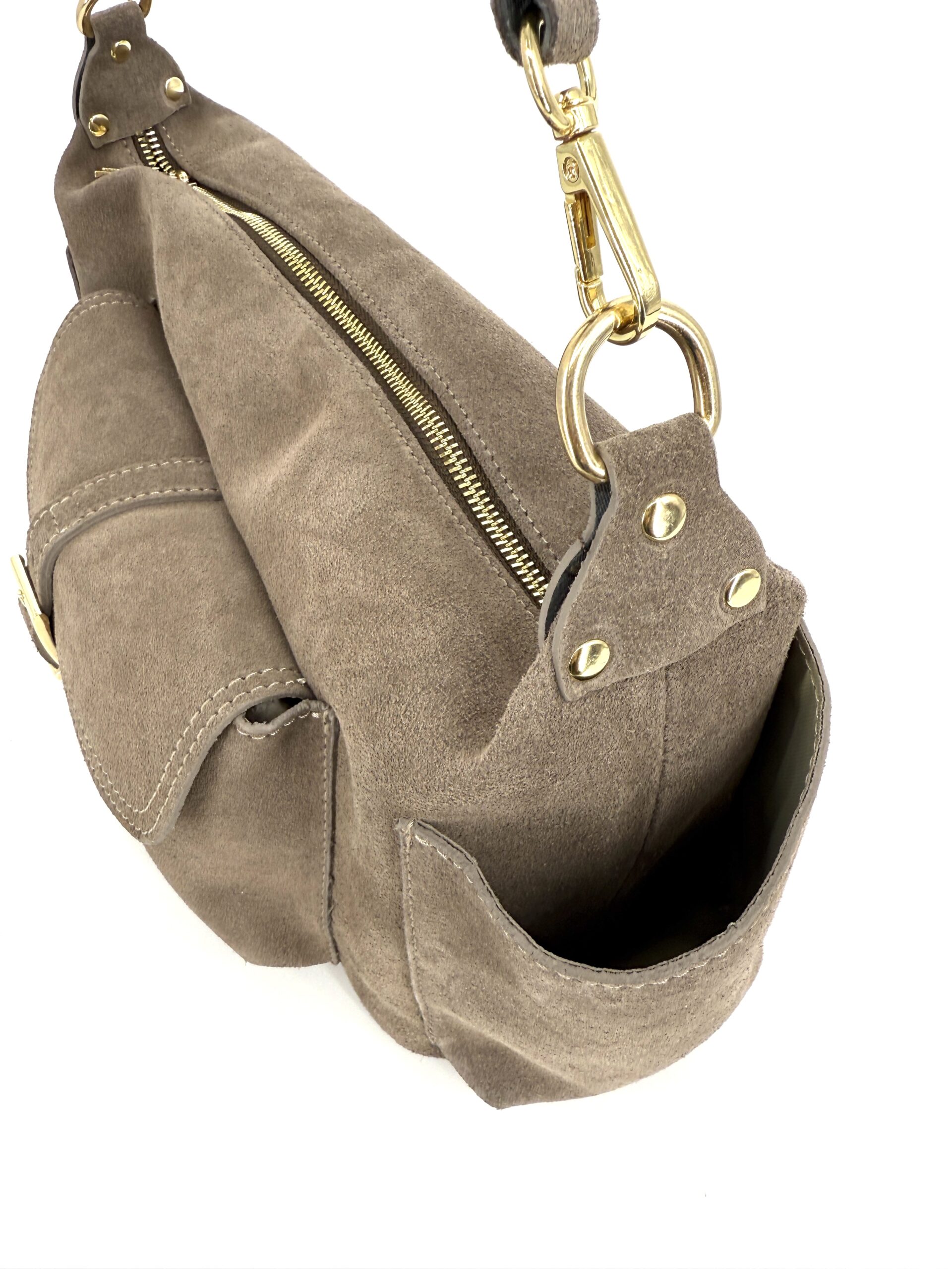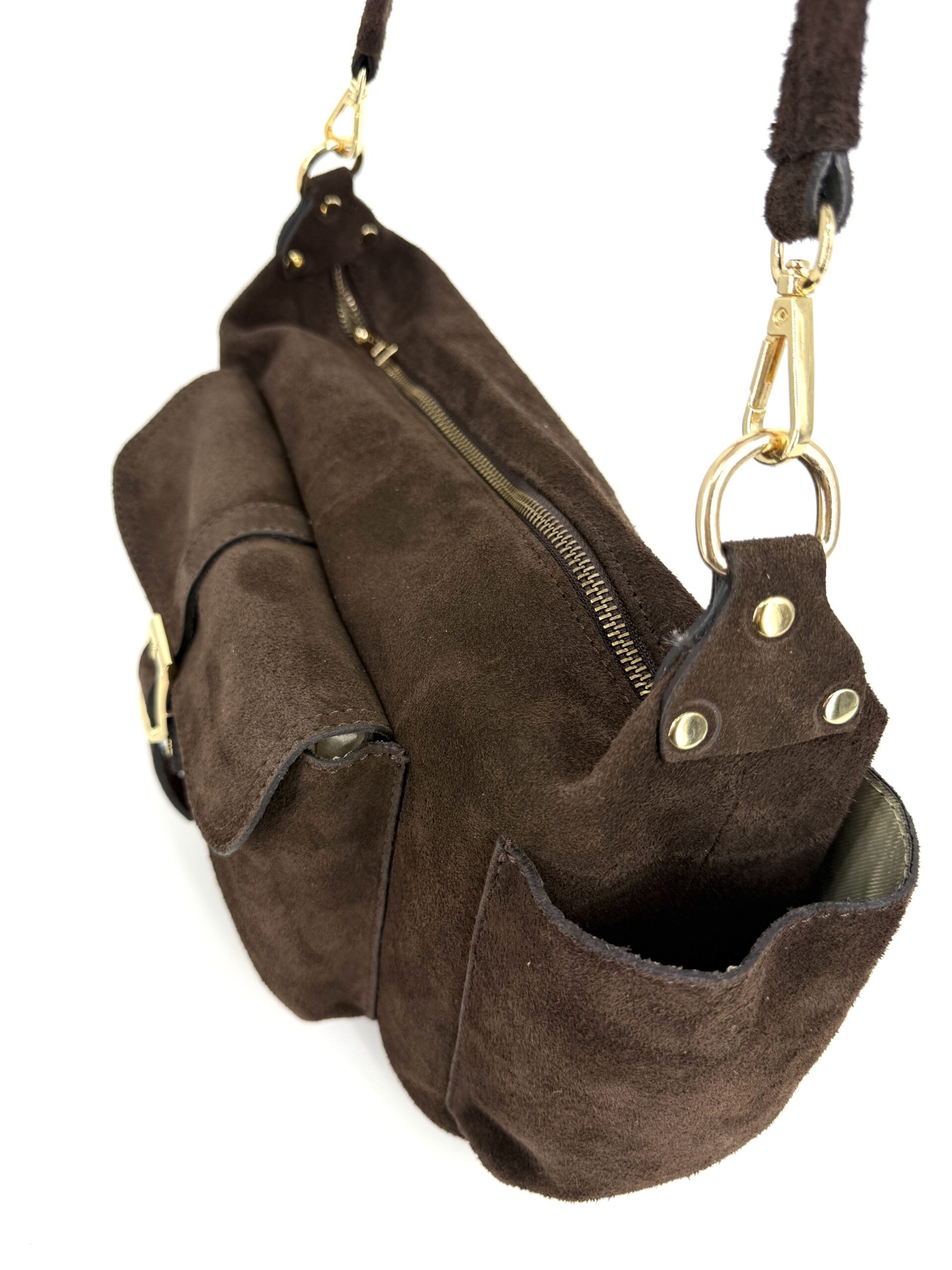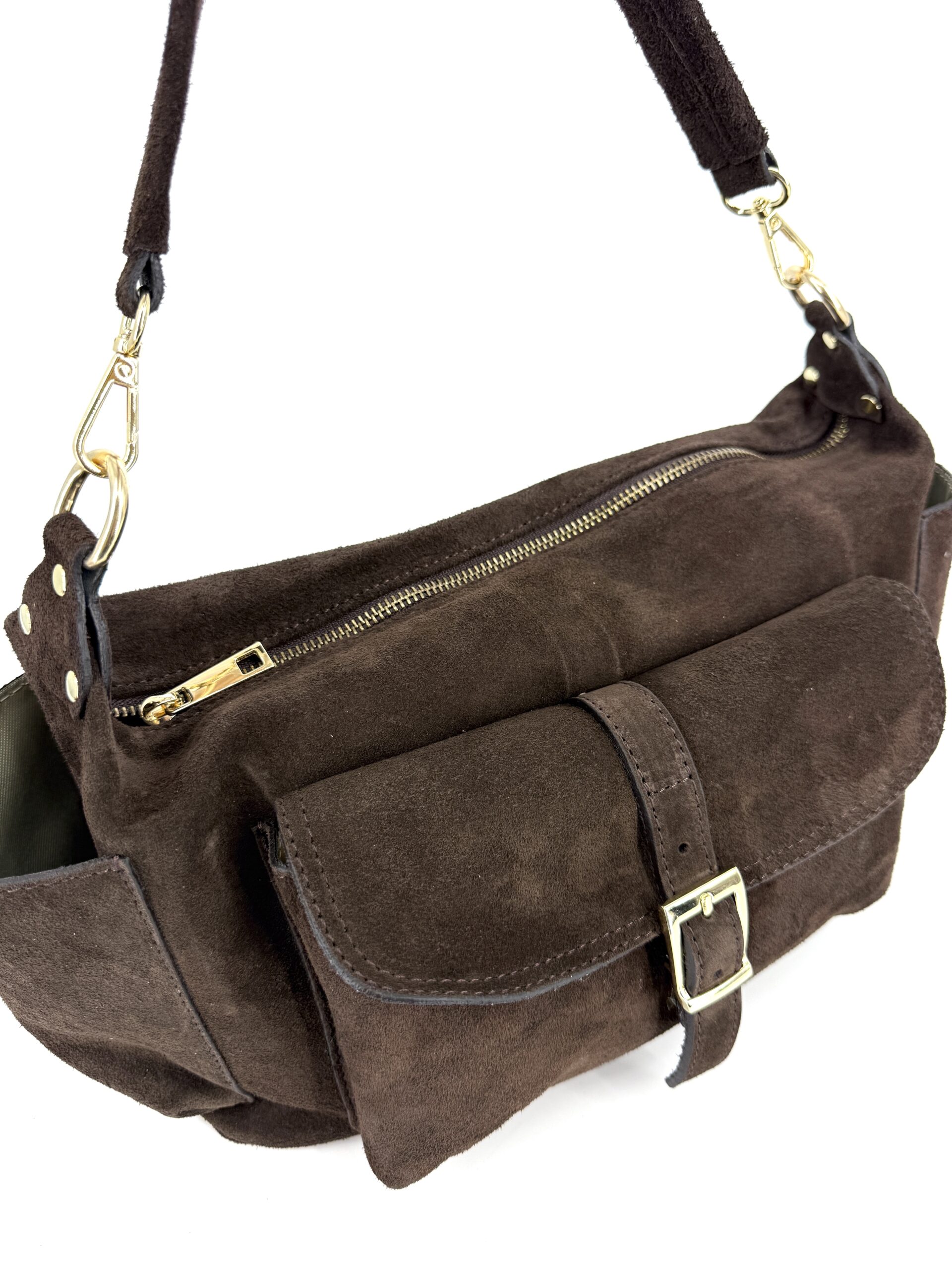 Športová kabelka z mäkkej brúsenej kože má priestranný hlavný priestor so zapínaním na zips, ktorý bezpečne uchová všetky tvoje každodenné nevyhnutnosti. Po stranách má dve bočné vrecká a vpredu vrecko s klopou s uzatváraním na nit. Vo vnútri kabelky je postranné vrecko na zips. Vďaka dvom vymeniteľným ramienkam sa dá nosiť cez plece aj ako crossbody. Ideálna voľba pre ženy, ktoré majú rady praktickosť a ležérny štýl.
