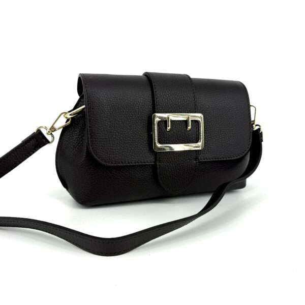 Čierna spoločenská kabelka hranatá s rozšíreným dnom a dlhou retiazkou.
